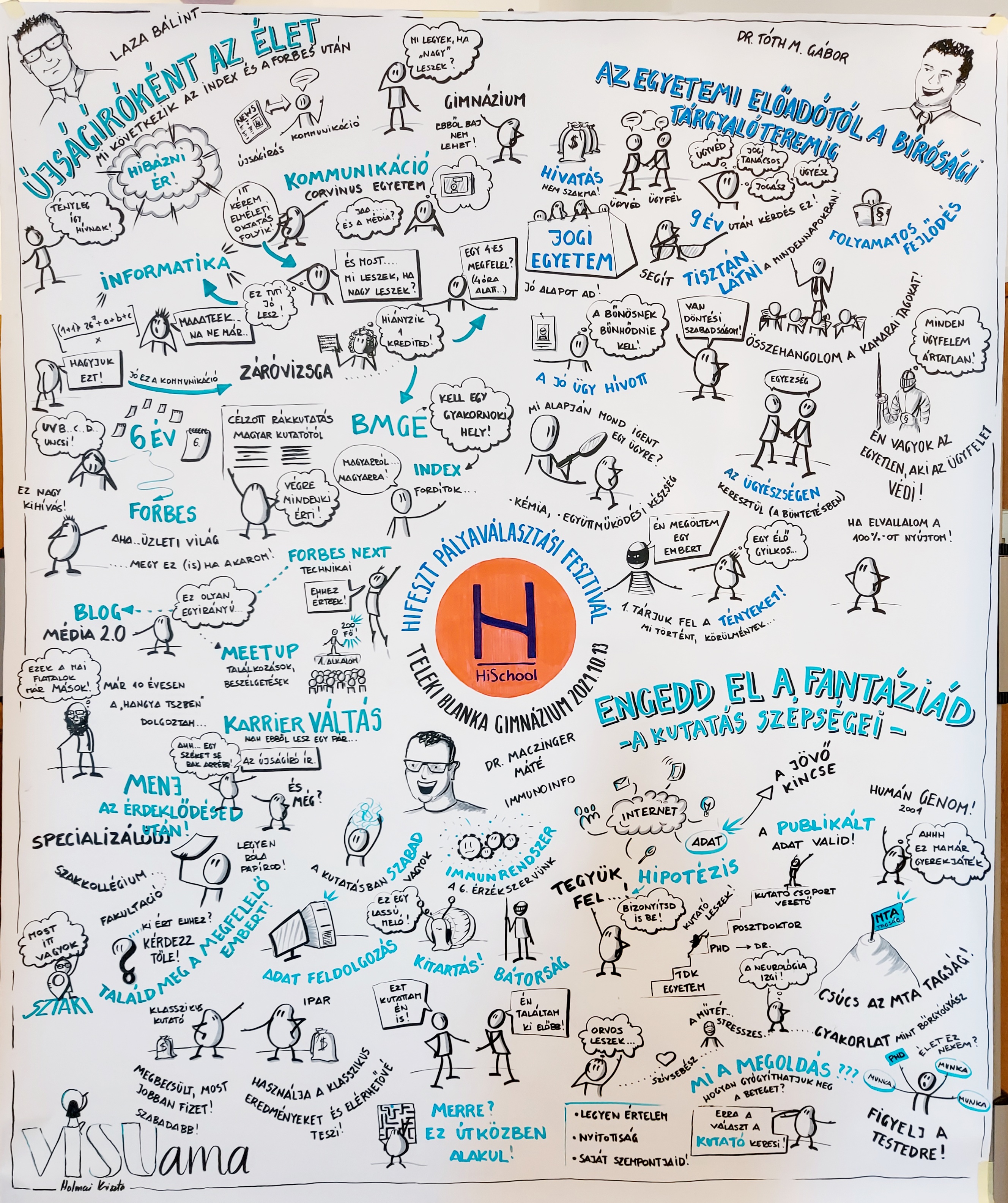 Eleinte saját tréneri munkám támogatása volt a célom, ma már trénereknek, előadóknak, vezetőknek rajzolok. A grafikus jegyzetelés egy különleges flow élmény számomra. Mérnökként szeretem a lényeget kiemelni és strukturálni, miközben az így készülő vázlat mellett megjelenő rajzokkal többet mondhatok, mint több oldalnyi szöveggel. A legjobban azt szeretem ebben a munkában, hogy mosolyt varázsol az emberek arcára:)